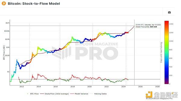 庫存到流量模型是一個基于稀缺性預測Bitcoin價格的熱門框架,它考慮了這些逐步減少的通脹。該模型將Bitcoin的現有庫存(現有供應量)與流量(新鑄造的Bitcoin)進行對比。由于減半事件和恒定的區塊增加,Bitcoin的流量減少,其庫存到流量比率上升,這表明稀缺性增加,理論上價值也會提升。